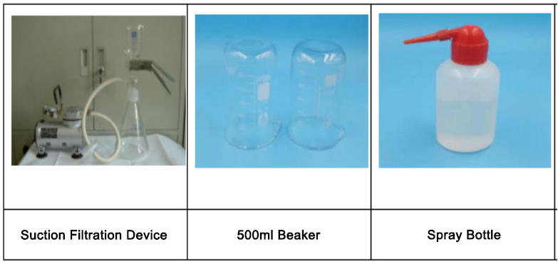 3. Turn on the negative pressure pump, pour the liquid in the beaker into the suction filtration device for suction filtration. After suction filtration, a small spray bottle is used to rinse the measuring cup and suction flask to thoroughly collect the retained particles.